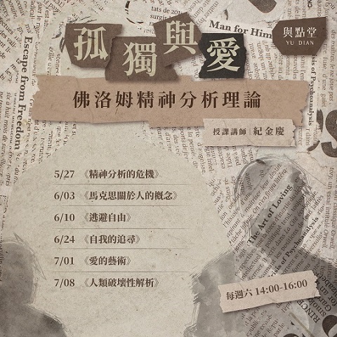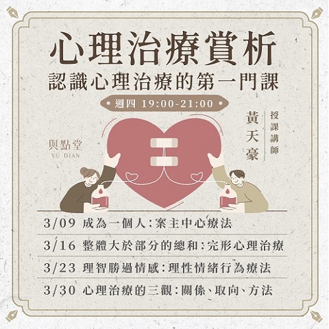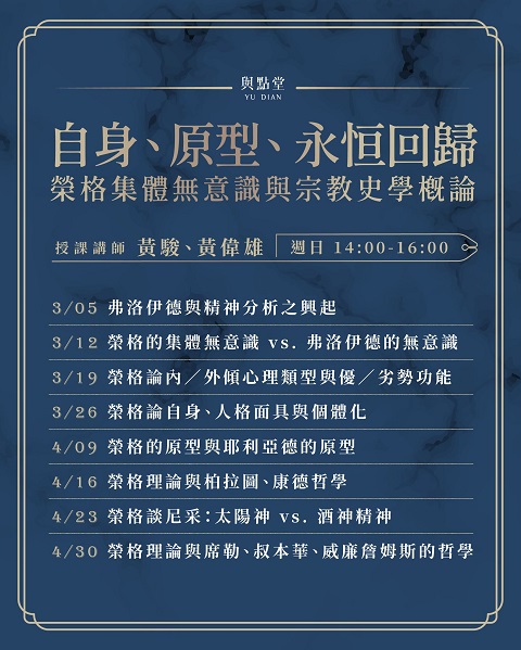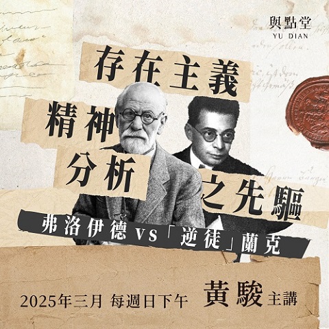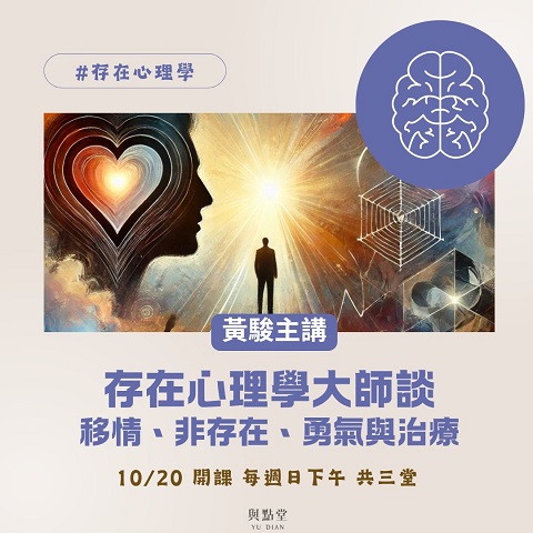 與點堂【心理學】課程一覽 尋找其他類型課程?所有課程類別選單 寫作/創作、評論 現代文學 古典文學 哲學 宗教、命理 歷史 社會學/經濟學/國際關係 人類學、民族誌 音樂 國、高中生課程專區 存在主義、馬克思與弗洛伊德的立方體 – 哈伯馬斯重讀佛洛姆黃駿老師 榮格論冥想與創造性想像作為療癒 – 靈魂/精神、團體治療、黑魔法黃駿老師 榮格談本己、陰影與阿尼瑪 – 原型與吞噬一切的母性黃駿老師 命運、虛無、罪作為本體焦慮 – 存在主義大師田立克論勇氣黃駿老師 神諭、創造力與內在魔鬼:存在心理學家的處方箋黃駿老師 存在主義精神分析之先驅 – 弗洛伊德 vs「逆徒」蘭克黃駿老師 催眠:歷史、科學與體驗的多維探索黃天豪老師 自由的暈眩與自戀:從存在心理學談命運、停頓、巫術黃駿老師 存在心理學大師談移情、非存在、勇氣與治療 – 美國心理學家梅之借徑齊克果、尼采黃駿老師 我們是怎麼「活」下來的?走出早期經驗傷害曾心怡心理師 孤獨與愛:佛洛姆精神分析理論(下)紀金慶老師 孤獨與愛:佛洛姆精神分析理論(上)紀金慶老師 心理治療賞析 – 認識心理治療的第一門課黃天豪老師 自身、原型、永恒回歸——榮格集體無意識與宗教史學概論(下)黃駿老師 自身、原型、永恒回歸——榮格集體無意識與宗教史學概論(上)黃駿老師尋找其他類型課程?所有課程類別選單 寫作/創作、評論 現代文學 古典文學 哲學 宗教、命理 歷史 社會學/經濟學/國際關係 人類學、民族誌 音樂 國、高中生課程專區