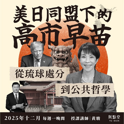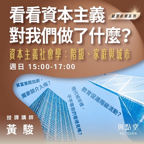 與點堂【社會學/經濟學/國際關係】課程一覽 尋找其他類型課程?所有課程類別選單 寫作/創作、評論 現代文學 古典文學 哲學 宗教、命理 歷史 心理學 人類學、民族誌 音樂 國、高中生課程專區 從琉球處分到公共哲學:美日同盟下的高市早苗黃駿老師 孤獨、焦慮與對話:社群媒體如何改寫人際互動蔡宜文老師 神秘主義、禁慾與資本主義:大師韋伯的宗教社會學黃駿老師 從川普1.0到川普2.0:戰爭訛詐?新反中主義與台灣的夏威夷化?黃駿老師 道教、儒教與新教的社會學比較黃駿老師 文明視野下的中國化:東協、印、日之對照/回應黃駿老師 恐怖主義、以哈衝突與美中角力黃駿老師 躺平的哲學:我們應該努力工作嗎?劉維人、朱家安老師 AI要搶走我的工作了嗎?科技衝擊並不新劉維人老師 資本主義社會學:階級、家庭與城市(下)黃駿老師 資本主義社會學:階級、家庭與城市(上)黃駿老師 美國與後美國世界:良性霸權與巧實力(下)黃駿老師 美國與後美國世界:良性霸權與巧實力(上)黃駿老師 合作的動力 – 去中心化的資本主義社會生存之道劉維人老師 女性主義讀書會(下)朱家安、周芷萱老師 女性主義讀書會(上)朱家安、周芷萱老師 永續幸福方法論:我們能像北歐人一樣生活嗎?劉維人老師尋找其他類型課程?所有課程類別選單 寫作/創作、評論 現代文學 古典文學 哲學 宗教、命理 歷史 心理學 人類學、民族誌 音樂 國、高中生課程專區